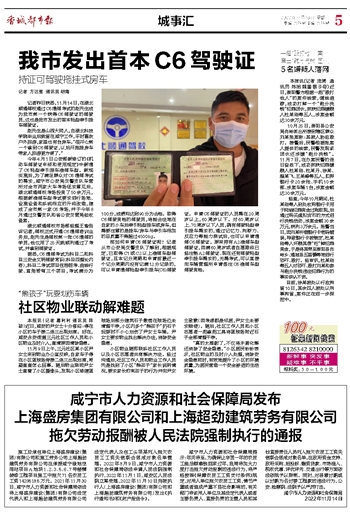 咸宁市人力资源和社会保障局发布上海盛房集团有限公司和上海超劲建筑劳务有限公司拖欠劳动报酬被人民法院强制执行的通报