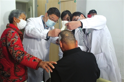 李婆婆称,今年34岁的周先生,一直靠在外打零工过生活,由于体力不支动作迟钝,往往每家干不了多久,就得重新找事情做,加之育有一子一女,家庭负担较重本就没有什么积蓄。而她和老伴的兄弟姐妹们家境也不富裕,如果去借医疗费,15万元之内有可能凑齐,但高达50万元以上,是肯定凑不齐的。就在她为医疗费用心急如焚,周先生心灰意冷提出出院回家之时,医生告诉他们,咸宁市中心医院郭东生院长本就是武汉同济医院神经外科的教授,可以去找他试试。