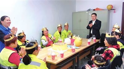 本报讯 (记者 徐浪 通讯员 黄恋舒) “第一次过这样的集体生日,太感动了!感谢志愿者们为我们举办这场集体生日会,充满了仪式感,心里很温暖!”日前,在新华保险咸宁中支环卫工人爱心驿站内,该公司志愿者们正在为负责黄畈社区路段环境卫生的10位“城市美容师”举办一场特别的集体生日会,表达对“城市美容师”的关怀与敬意。