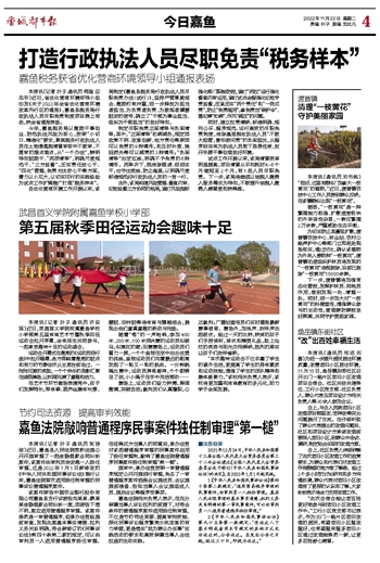 本报讯(记者 叶子 通讯员 周璇 应志华)近日,省优化营商环境领导小组印发《关于2022年全省优化营商环境改革先行区的通报》,嘉鱼县税务局行政执法人员尽职免责制度项目榜上有名,获全省通报表扬。