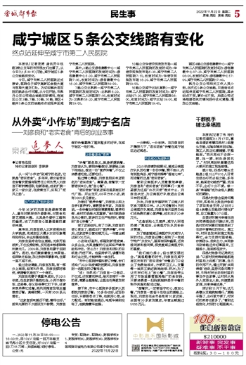 咸宁城区5条公交线路有变化