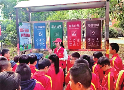 活动中,团县委相关负责人给队员们讲解了不同生活垃圾的处理渠道,并和小队员们亲密互动;在“有奖竞答”实践环节,队员们寻找小区中的生活垃圾并对可回收物、厨余垃圾、有害垃圾和其他垃圾进行了投放竞答。
