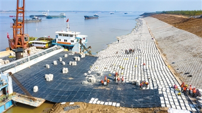 11月15日,长江嘉鱼簰洲湾新洲段首次采用水下预制砼铰链排施工。 据介绍,水下预制砼铰链排施工是将预制件运至施工现场,通过U型环卡扣螺栓纵横连接成整体,下面铺设排布,将江堤水上护坡和水下护岸连在一起,提升抗冲刷能力。 (通讯员 雷平)