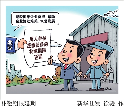 为减轻困难企业负担,帮助企业渡过难关、恢复发展,北京市人力资源和社会保障局、北京市发展和改革委员会、北京市财政局、国家税务总局北京市税务局四部门近日联合发布《关于阶段性缓缴社会保险费有关问题的通告》,明确阶段性缓缴三项社会保险费政策在2022年底到期后,缓缴社会保险费的最后补缴期限由原来的2023年2月23日前,延长至2023年底。