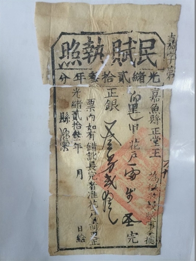 段先生今年70岁,是一名收藏爱好者。前不久,他在县城买了一套老房子,在打扫房子卫生时,发现房中的破柜子有暗格,里面藏着地契和民赋执照、漕粮执照等票证资料。