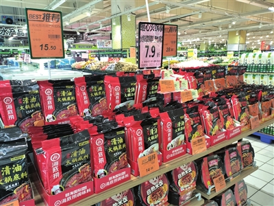 近年来,不少火锅食材超市也层出不穷。书台街附近一家火锅食材超市,从蘸料到食材,应有尽有。