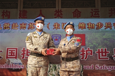 新华社电 中国赴南苏丹(朱巴)维和步兵营13日在首都朱巴联合国特派团中国营地举行指挥权交接仪式。这标志着中国第八批赴南苏丹(朱巴)维和步兵营圆满完成为期一年的维和任务,第九批维和步兵营正式走上战位,开始履行维和使命。