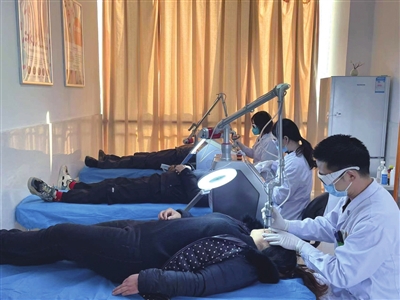 “我们科室不但设有激光综合治疗室、皮肤医美治疗室、激光医美治疗室、过敏原检测室、真菌检测室、皮肤镜检查室、光动力治疗室、手术室、医疗美容、皮肤病、性病独立诊室等,还引进了一系列高端、先进设备,供市民选择使用。”该院皮肤科主任杨科介绍,为更好造福全市百姓,近年来,该科先后配备了德国皮肤镜检测分析系统、高频电刀手术治疗机、高频电磁疗仪、半导体激光治疗机、红蓝黄光治疗仪、点阵激光换肤系统、二氧化碳激光治疗机、强脉冲激光治疗机、调Q激光治疗机、光动力治疗仪、NB-UVB光疗仪、UVA光疗仪、准分子308双波长治疗系统、多功能微波治疗仪、多功能男科妇科综合治疗仪等先进设备,打造全市一流的皮肤科室。