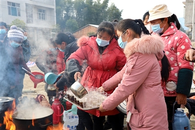 12月25日,通城县五里镇程凤村,村民们正排队领取免费中药汤剂。