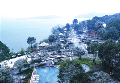 嘉鱼山湖温泉旅游度假区依山傍水,环境优美,气候宜人,融湖光山色,青山绿水,人文建筑为一体,具有“温泉养生、旅游观光、商务、休闲、度假”等特色。