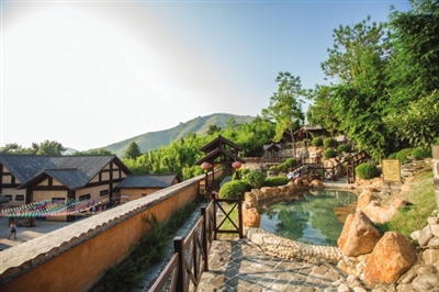 春泉庄温泉在设计中保留自然环境的原始生态风貌,43个泡池依地形错落有致,隐卧在原生树木和山石的怀抱之中,四周田野风光尽收眼底。