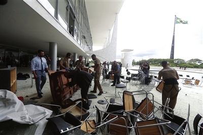 博索纳罗的数千名支持者8日闯入位于巴西利亚的国会大厦、联邦最高法院和总统府,与军警冲突。数小时后,巴西警方、安全部队重新控制上述国家权力机构。