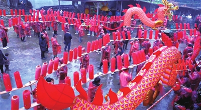农村的传统文艺最隆重的算是舞龙,特别深入人心,老少皆喜,舞龙队伍穿行在各个村庄,送福祝贺,村庄的人也是锣鼓喧天,迎接他们的到来。舞龙,也叫玩龙灯,是一种传统民俗文化活动。舞龙源自古人对龙的崇拜,每逢喜庆节日,人们都会舞龙,在鄂南一带,舞龙活动主要在春节开始,在二月初也会举行,即是“龙抬头”。舞龙时,龙跟着绣球做各种动作,穿插,不断地展示扭、挥、仰、跪、跳、摇等多种姿势,有严肃的展示表演,也有活泼的表演。舞龙一般为三年制,也就是说,要么不开展舞龙,只要头年开始了,就连续要进行三年,到了第三年的元宵节,就要举行“灿龙”仪式,即烧龙,人们拖着长龙在熊熊烈火中拖过,这就是送龙回家。