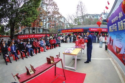 当日上午9时许,随着一阵警铃声响起,一幢老式居民楼里喷出滚滚的浓烟。居民们在消防救援人员的组织下,有序地从家里快速跑到楼下的安全地带。消防救援人员现场给居民们普及了火场逃生的要点和技能。