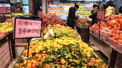 皮薄易剥,口感清甜,鲜美无渣的砂糖橘只需2.5元/斤。昨日上午,在书台街一家生鲜超市内,市民争相购买。春节期间,相同品质的砂糖橘还是5元/斤。