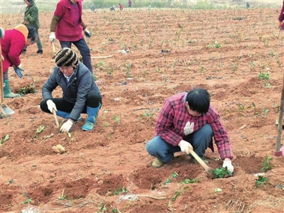 本报讯(通讯员 邓丹 周泽宇)“一天100元包午饭,等茶叶有收益了还能再分钱,想想都美!”2月4日,嘉鱼县官桥镇朱砂村丰盛庄,村民们一边在荒山上种着茶树一边闲聊着。
