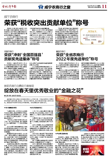 嘉鱼农商行荣获“全省农商行2022年度先进单位”称号