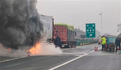 本报讯(记者陈诗傲 毛亚轩 通讯员朱莎莎 柴振博)出差路上突遇车辆起火,民警化身救火“卫士”,一边控制火情、联系消防部门,一边疏散车辆和人员。2月8日,在咸宁民警和消防救援人员的共同努力下,蕲嘉高速公路上的自燃挂车火势最终被扑灭。