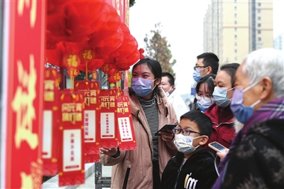 灯谜会现场人流攒动,许多市民纷纷来到猜灯谜现场打卡驻足。他们或三五成群互相交流,分析灯谜;或独自一人认真思索,查找政策……破解了谜底市民可兑换税务周边奖品,整个现场氛围浓厚。