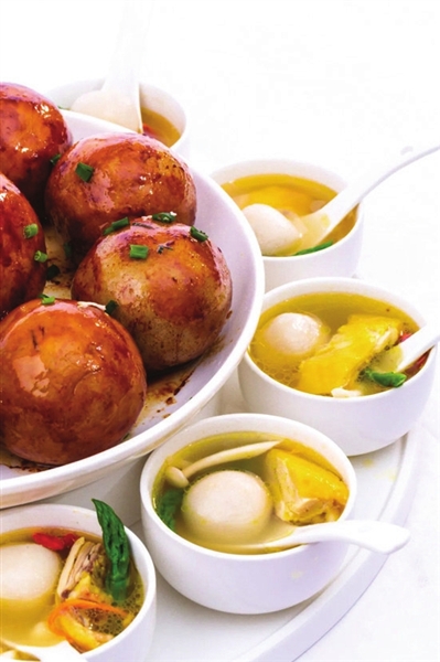 圆子寓意团团圆圆,嘉鱼更素有“无圆不成席”的说法,取鱼白剁成茸,再混合适量猪肉膘和调味料打上劲,蒸制后扑面而来的都是鱼和肉的清香,肥而不腻,回味无穷。