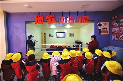 “宝贝们,知道发生火灾时应该拨打什么电话吗?地震来了又怎么办,躲什么地方安全?有哪些自救的方法?火灾时,该怎样正确使用灭火器?”在防灾减灾体验馆,消防宣传员以“认识、探索、体验”为脉络,沿着各展厅和体验厅,向师生们讲解地震基本知识、地震预警、震中避险、应急逃生等方面知识。