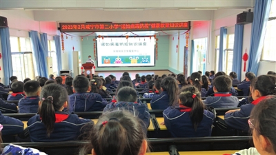 本报讯 (记者夏咸芳 通讯员陈新然) 为提高全校师生对诺如病毒的认知,增强师生自我防控意识,保障校园学生安全。2月21日下午,咸宁市第二小学特邀永安社区卫生服务中心医务人员来校,为全校师生开展“诺如病毒防控”健康教育知识讲座。