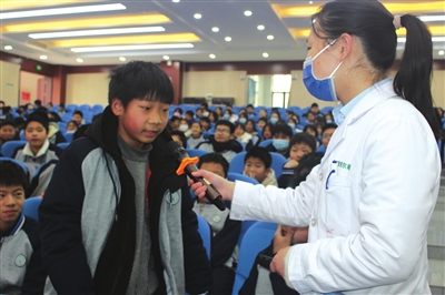 讲座伊始,学生们集体跟随爱尔眼科医生学习了一套新的眼保健操。紧接着,来自咸宁爱尔眼科的李修圆和代洁医生,用通俗易懂的语言、生动有趣的PPT课件从眼球的基本结构、近视眼发病的原因、近视造成的影响以及如何预防和控制近视等方面,分别为市第八小学和市第九小学的学子进行了详细讲解。讲座中还穿插了互动环节,纠正了学生们对近视的错误认识,引导他们注意科学用眼卫生,认真做好眼保健操,严格控制电子产品使用时间,积极参加体育锻炼。