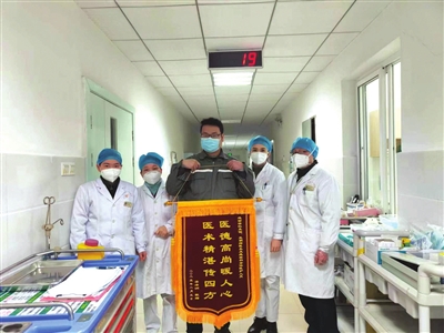 临别之际,他的儿子感于该科医护人员精湛的医疗技术,以及对老人“不是亲人胜似亲人”的高尚医德,连夜赶制了一面鲜红的,上书着“医德高尚暖人心 医术精湛传四方”十四个大字的锦旗,专程送到医院,以表达自己对该科全科医护人员的感激之情。