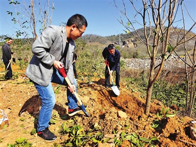 在植树活动现场,志愿者们分工协作,干得热火朝天,拿起铁锹锄头等工具挖坑、运苗、培土、浇水,精心栽植了一棵棵树苗。通过此次活动,不仅提升了大家保护生态环境的意识,也用实际行动为美化家园贡献了烟草力量。 (通讯员魏建军)