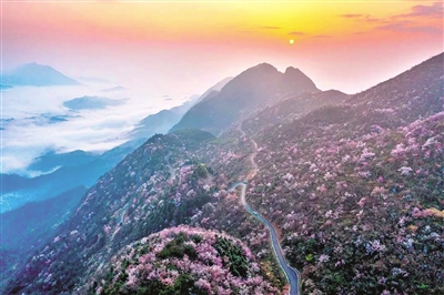 近年来,崇阳在建设好幕阜山旅游公路的同时,还规划建设一条从港口乡西庭樱花小镇—西庭岩—铜钟乡大岭村—青山镇官财山—大泉洞—金塘镇柃蜜小镇的循环旅游公路,全长100公里,打通港口、铜钟、青山、金塘四个乡镇,一条赏樱精品路线早已成型。