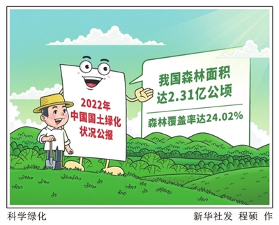 新华网消息 3月12日是我国第45个植树节。全国绿化委员会办公室当日发布《2022年中国国土绿化状况公报》显示,目前,我国森林面积2.31亿公顷,森林覆盖率达24.02%;草地面积2.65亿公顷,草原综合植被盖度达50.32%。