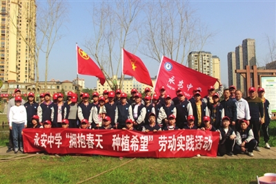 本报讯(记者夏咸芳 通讯员万志鹏 阮春艳) 为充分发挥劳动综合育人功能,同时增强学生珍惜绿色环保的责任心,唤起孩子们植树造林、绿化环境、美化生活的共同意识。3月9日,咸安区永安中学组织七年级60余名师生代表来到海德公馆附近河堤,开展义务植树劳动教育实践活动。