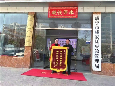 本报讯(记者 葛建伟 通讯员 夏亚平 胡小鹏)3月6日,咸安区汀泗桥镇康乐养老院院长邹明来到咸安区应急管理局,为该局送上一面写有“爱心播洒养老院,真情温暖夕阳红”的锦旗,以表达对该局的感激之情。