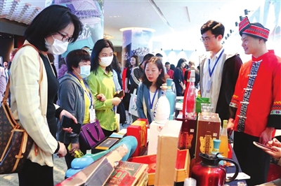 在咸宁文旅展示区,摆放了琳琅满目的特色文旅产品,引得现场嘉宾纷纷侧目。在品尝了赤壁青砖茶和咸宁桂花产品后,不少宾客竖起了大拇指。深圳市民龙女士说:“这青砖茶真好喝!我老家也在咸宁,只是很多年没有回去了。今天看到了很多美丽的新景点,打算近期一定要回家看看!”