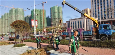 由于城区部分路段、公共绿地花卉苗木栽植年限久,长势不良,且部分市民文明意识淡薄,有时出现损绿毁绿现象,影响城区绿化品质,与省级园林城市创建标准有差距。针对这种情况,该局组织园林工人28人,利用装载机在城市道路上补栽死株的行道树,在公共绿地补植红继木、红叶石楠、中华蚊姆等苗木、草坪。此次补植桂花、香樟、栾树等乔木1860余棵,红继木、红叶石楠、中华蚊姆等小苗20万余株。