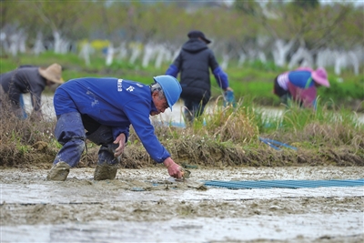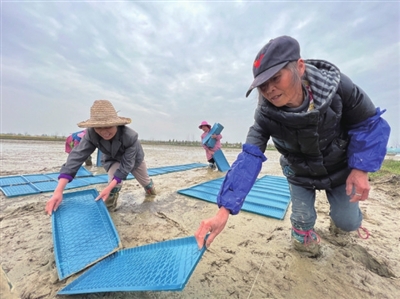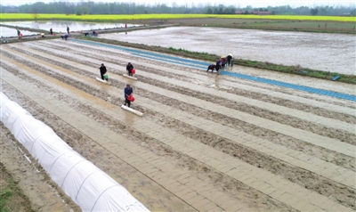 “底土要整平,种子播撒要均匀。”在田埂上,咸安区农业农村局农艺师王广贤俯身跟工人们讲解着,指导他们在工作中的技术知识,他说,必须要抢在3月30日之前完成育秧工作,也要确保秧苗前期发育好。