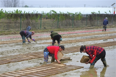 据了解,今年咸安区汀泗桥镇、向阳湖镇、双溪桥镇等5个乡镇新建9个集中育秧基地,育秧面积200余亩,可栽插大田面积2万余亩,第一批早稻秧苗在30日前可全部播种完成,预计4月20日左右开始移栽,集中育秧基地建设,促进了双季稻轮作项目的实施,为稳定粮食面积和产量,保障粮食安全奠定了基础。