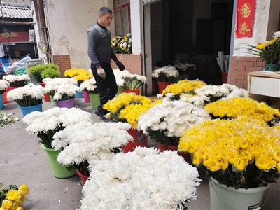在滨河东路花仙子花店内,老板介绍说,清明祭祀用的菊花大多为白色和黄色两种,因周末两天天气晴好,所以现在店里很多清明花束开始预订热卖了。在滨河东路一家大型花店批发市场,老板张联平告诉记者,为迎接清明节菊花销售高峰期,他们提前半个月就开始准备了,今年准备了30万枝黄、白菊花。高峰期每天都有1-2万枝的菊花销量。
