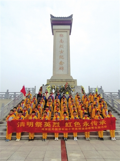 本报讯(记者熊大平 通讯员熊丹) 近日,咸安区外国语实验小学师生来到鄂南烈士陵园,缅怀先烈,祭奠英魂。