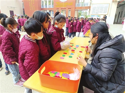 上午的玉泉校区操场上人头攒动,二年级挑战区域内充满节日喜庆的剪纸展尤为引人注目。