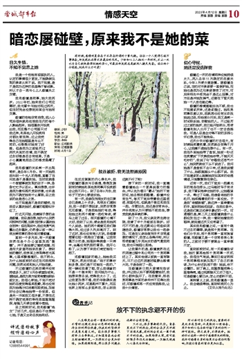 当韵瑾亲口把大致情况告诉我,并让我以后不要再跟着她时,我的心都快裂开了。在我看来,那名男同事各方面的条件并不见得比我好,可韵瑾却再一次没有选择我,让我十分痛苦。
