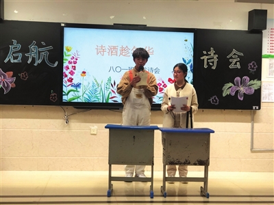 本报讯(记者熊大平) “且将新火试新茶,诗酒趁年华。”近日,咸宁实验外国语学校801班举行了一场别开生面的经典古诗吟诵会,同学们品春茗赏古诗,共赴一场春之约。