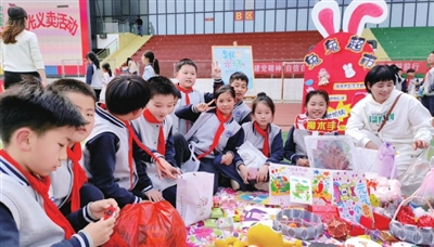 从2022年起,该校还于每年3月开展“跳蚤市场”阳光义卖活动,为贫困学生捐款,学生们踊跃将闲置的书籍、玩具等物品拿出来“义卖”。2022年,阳光义卖活动筹集善款2000元,用于采购学习物资捐赠给乡镇学校的贫困生;今年共筹集善款5002元,均以学校名义分别捐赠给希望工程和赤壁市福利院。