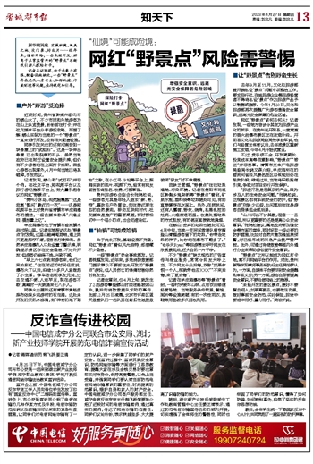 “未经开发的景区景点,最好不要擅自进入;如果真要去,也要做足功课,做好事前安全防范,买好保险,旅途中要结伴而行、量力而行。”吴旭梦说。