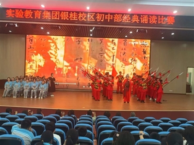 本报讯(记者夏咸芳 通讯员吴云东 曾令宝) 为传承国学文化经典,弘扬民族文化精髓,激发学生爱国之情、强化学生爱国之志,4月26日,咸安区实验学校教育集团银桂校区开展了以“传承文明 团结奋进”为主题的经典诵读比赛活动,该校七年级全体学生以班级为单位参加比赛活动。
