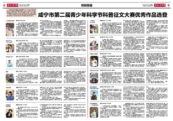 为推进《全民科学素质行动规划纲要(2021-2039年)》实施,培养青少年的科学素质、创新精神和实践能力,市科协、市教育局、市科技局、团市委、市妇联共同举办了咸宁市第二届青少年科学节。其中,科普征文大赛得到了社会各界的广泛支持,共征集作品550篇。活动不但激发了广大青少年对科学和文学创作的兴趣,引导青少年追求和探索科学的奥秘,更展现出了我市新时代青少年的科学素养、想象力和创造力。