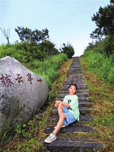我最喜爱的是九宫山的夜。吃完晚饭,跟爸爸妈妈沿着山间小路散步回酒店,一路上晚风拂过脸庞,甚是惬意。待到天黑透了,满天繁星撒满夜空,那是我在城市中不曾见过的美景,好似无数萤火虫在飞舞,又好似宝石在闪耀,璀璨夺目。那一刻,我的脑海中响起儿时时常哼唱的童谣:一闪一闪亮晶晶,满天都是小星星……可是,星星为什么会一闪一闪呢?读大学的舅舅告诉我,星星会一闪一闪的,是由于大气层的扰动。