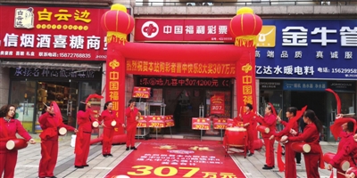 更有趣的是,5月11日上午,中奖站点门前咸宁福彩管理站设置彩虹门,邀请腰鼓队祝贺时,中奖彩友王先生竟“藏身”看热闹的市民之中。“是谁啊?”我惊奇地问销售员,销售员神秘地说:“我要保护彩友,他已经回家了,我才偷偷告诉您。”“他今天不去兑奖吗?”记者反问销售员,销售员告诉我说:“今天上午他把中奖彩票交给他的妻子到武汉兑奖去了,他却在彩票店门口悠闲地看热闹。”