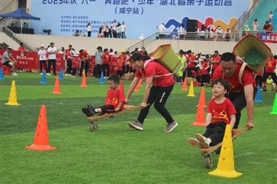 本报讯(记者夏咸芳)5月13日至14日,2023年庆“六一”“奔跑吧·少年”湖北省亲子运动会(咸宁站)在湖北科技学院体育场举行,来自全市17所幼儿园536组家庭的1000余名运动员,参加《奔赴征程》《亲子竞速》等8个运动项目的角逐。