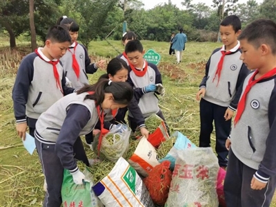 这是市城管执法委联合咸宁实验外国语学校玉泉校区6年级6班全体师生,开展劳动体验教育实践课的场景。